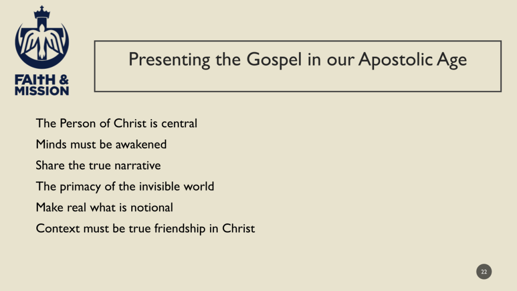 The early evangelists as recorded in the acts of the apostles all shared the same approach. They told the story of salvation. They preached Christ, but they did so in the context of the overall narrative that made his significance crystal clear. Much of what it means to be converted to the Christian faith is to embrace the true narrative of humanity. We need to reinvigorate our grasp of this true story, that it is an epic saga of high drama, and that it is also the story of each human person’s individual life, and that it is the only story that will provide the meaning we are all so desperately seeking.